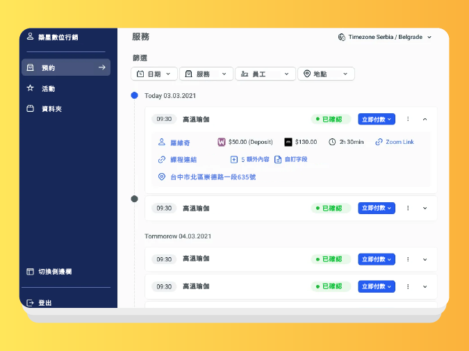 搭配線上付款流程,讓顧客在預約時就完成付款,提升轉單效率。